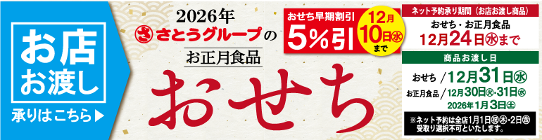 「2026年 宅配おせち」「2026年 店舗受取りおせち」ご予約 承り中です!