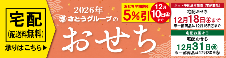 本日より、「2026年 宅配おせち」「2026年 店舗受取りおせち」商品の承りを開始いたしました。