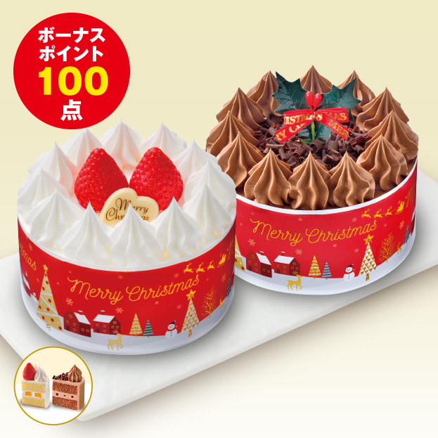 苺のケーキとチョコケーキの2つの味が楽しめるペアケーキです。