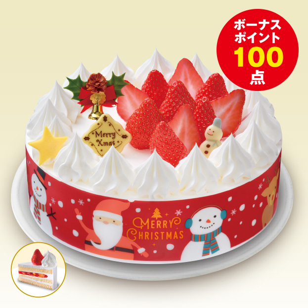 口どけの良いスポンジとクリームが特徴の苺を使用したクリスマスケーキです。
