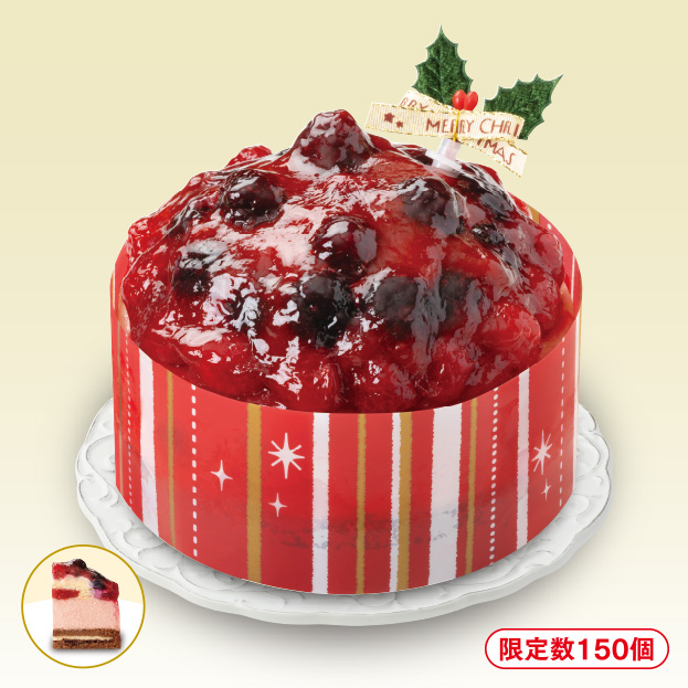 クリスマスパーティの食卓を華やかに演出する、真っ赤な色合いのベリーチーズケーキです。
