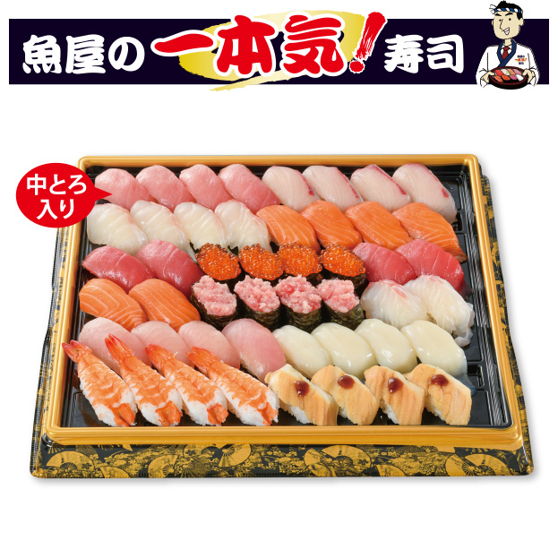 ■商品内容:中とろ、かんぱち、真鯛、サーモン、まぐろ、いくら、まぐろたたき、トロびん、いか、えび、穴子