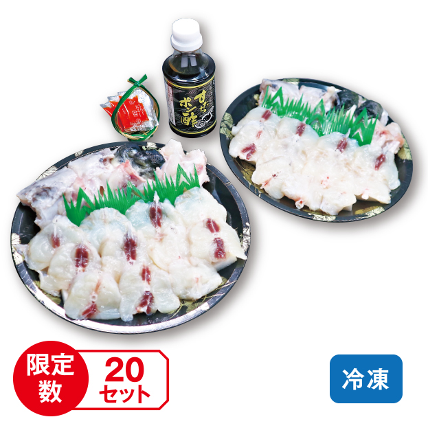 ■とらふぐ鍋用切身・あら(長崎県産他・養殖)400gx2パック、すだちぽん酢300ml、もみじおろし3gx5コ