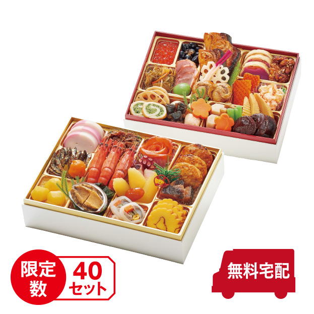 ■盛り付け済み商品をお届けします。※紙製重箱に盛り付けています。