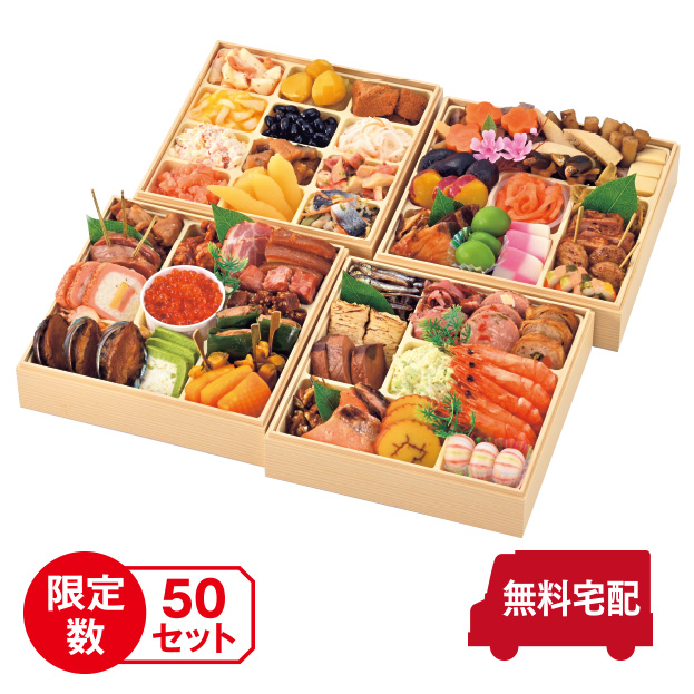 お正月に大人数が集う食卓に最適なおせちです。人気のある厳選した食材を沢山盛り込みました。