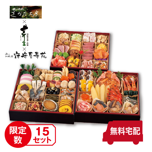 【25】北上コラボおせち 三段重〈 境港 磯の味処さかな工房 / 京都料理旅館 芹生 / 和倉温泉 寿苑 監修 〉