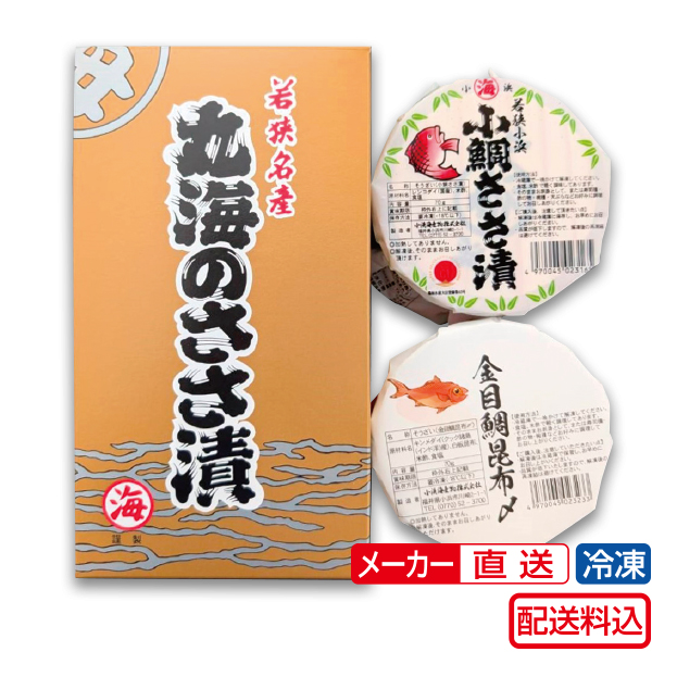 ■小鯛ささ漬(国内産)、金目鯛昆布〆(クック諸島産)各70g入x1樽