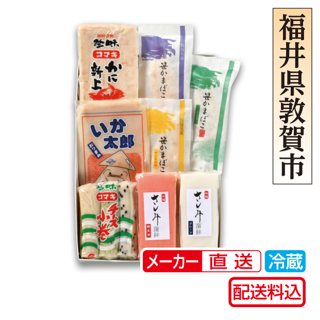 ■カニ新上1枚、いか太郎、チーズ小巻、笹かま(しそ・チーズ・プレーン)、さしみ蒲鉾(明太子・プレーン)x各1