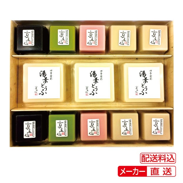 京都北野天満宮すぐ傍の胡麻豆腐専門店「京五山」の人気商品、ごまとうふと湯葉どうふの詰合せです。