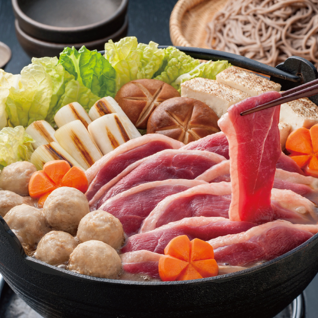 ■鴨鍋セット4人前(合鴨ロース約130g、合鴨つくね6個、五割そば200g)×各2、(鴨だし濃縮スープ30g、山椒0.2g)×各4