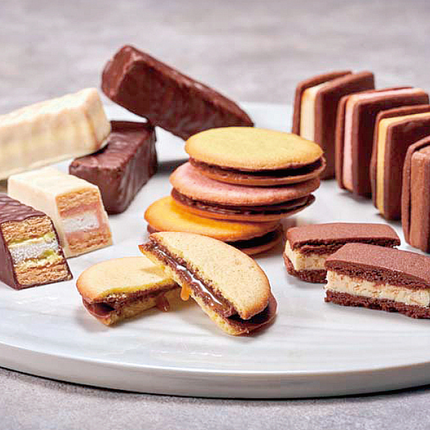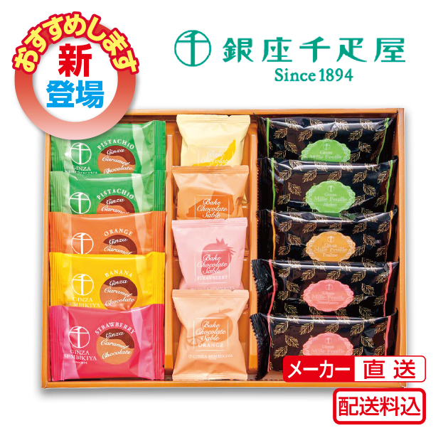 チョコレートでキャラメルを包み込みサンドした銀座キャラメルショコラと、銀座ミルフィーユ、銀座焼きショコラサブレの詰合せです。