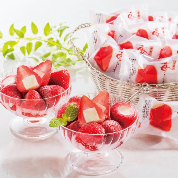 甘酸っぱい苺の中に練乳入りアイスを詰め込んだ、人気の苺アイスデザートです。