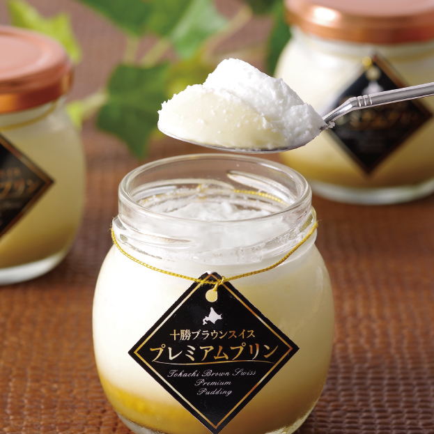 十勝橋本牧場の希少なブラウンスイス牛の生乳を使用した3層のプリン。