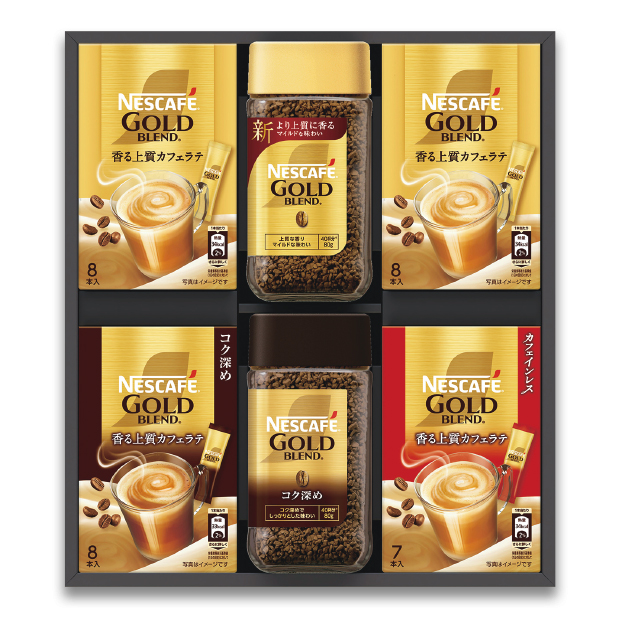 ■〈ネスカフェゴールドブレンド〉オリジナルブレンド、コク深め 各80g×各1、〈ネスカフェゴールドブレンドスティック〉オリジナル7gx8×2箱、コク深め7gx8、カフェインレス7gx7×各1箱