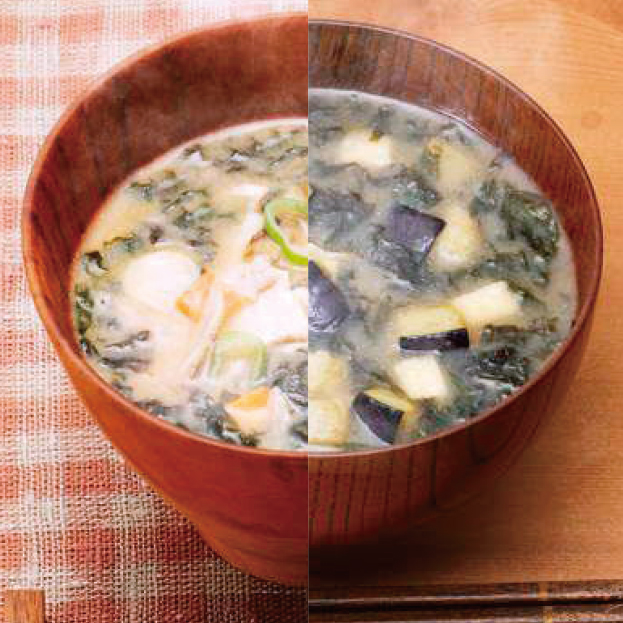 海苔が主役の芳醇な香りの味噌汁とお吸物です。海苔専門店だからこそ実現できる良質な海苔を使用しています。