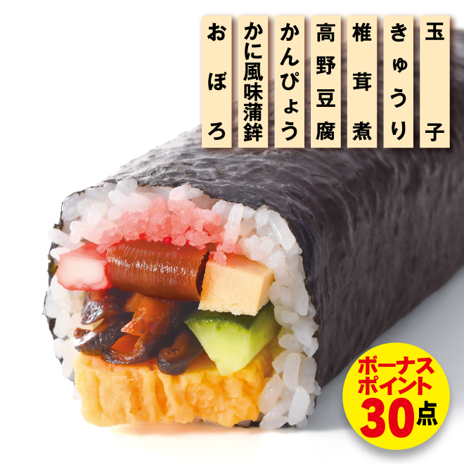 旨みのある高野豆腐、かんぴょう、厚焼き玉子など7種類の具材を巻き上げました。
