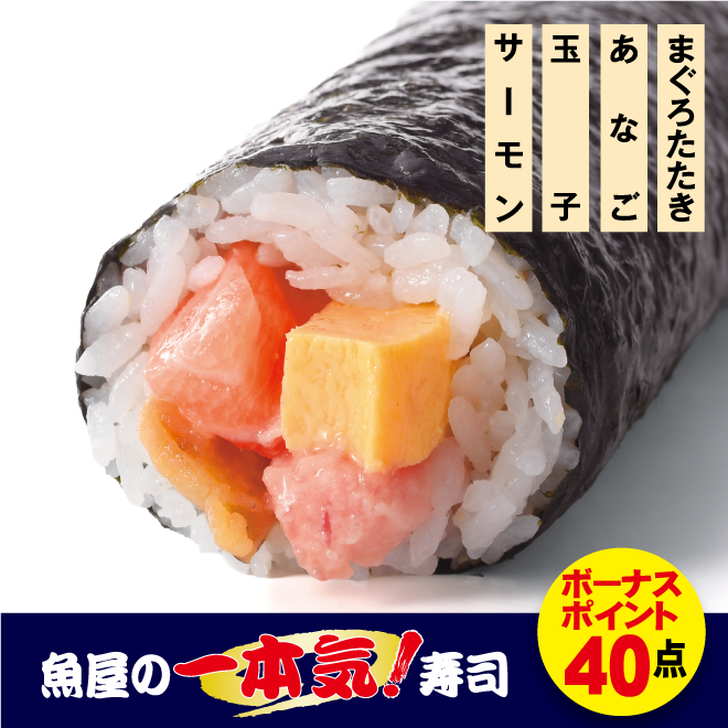 人気のサーモン、まぐろたたきなど4種の具材を巻き上げました。