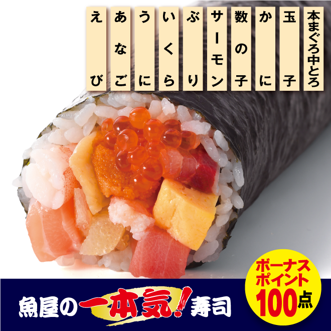 ■えび・あなご・うに・いくら・ぶり・サーモン・数の子・かに・玉子・本まぐろ中とろ
